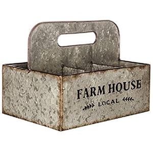 Farmhouse Galvanized Metal Basket with Compartments