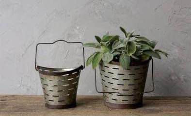 Galvanized Metal Olive Basket (you choose size)Measurements: Large: 10" dia. x 10"H. Small: 8"dia x 8"H